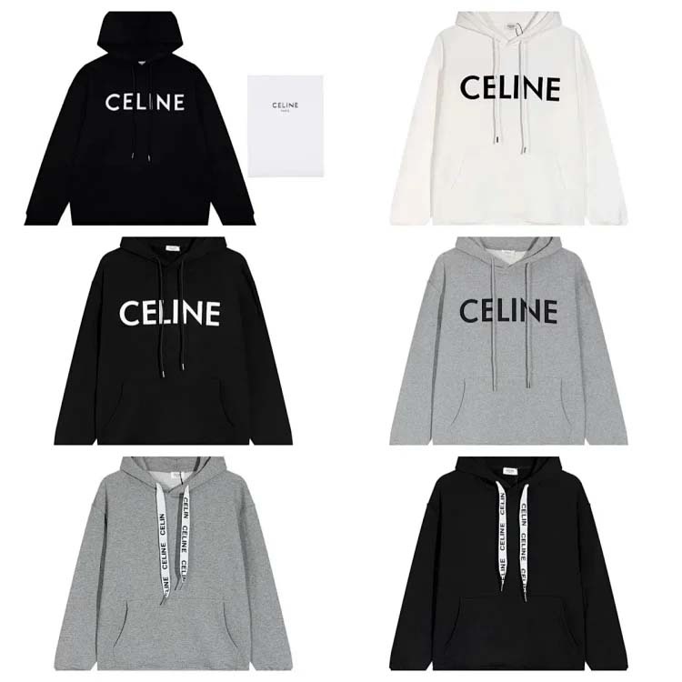 CELINE Simple letter print hooded sweatshirt loose top-2135