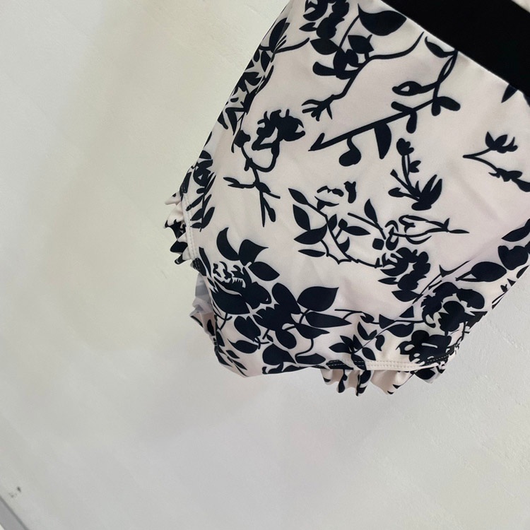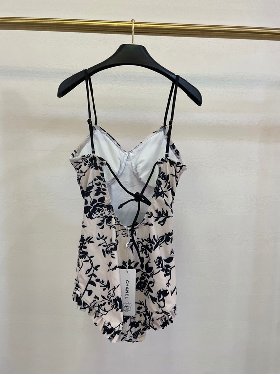 Chanel Black and White Floral One-Piece Swimsuit-6440