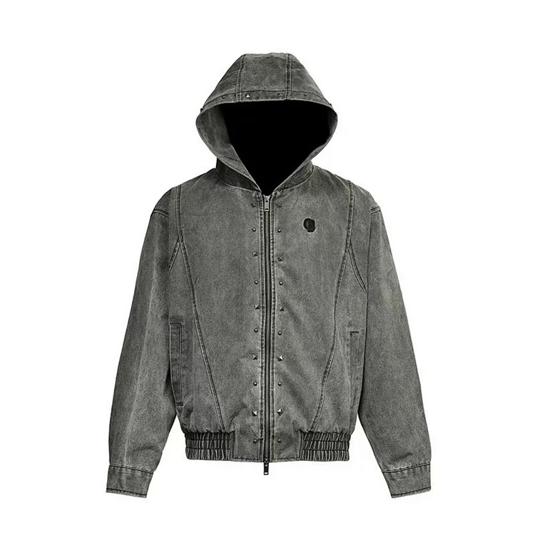 Home > Darkage new washed and distressed hooded jacket with rivets-5013