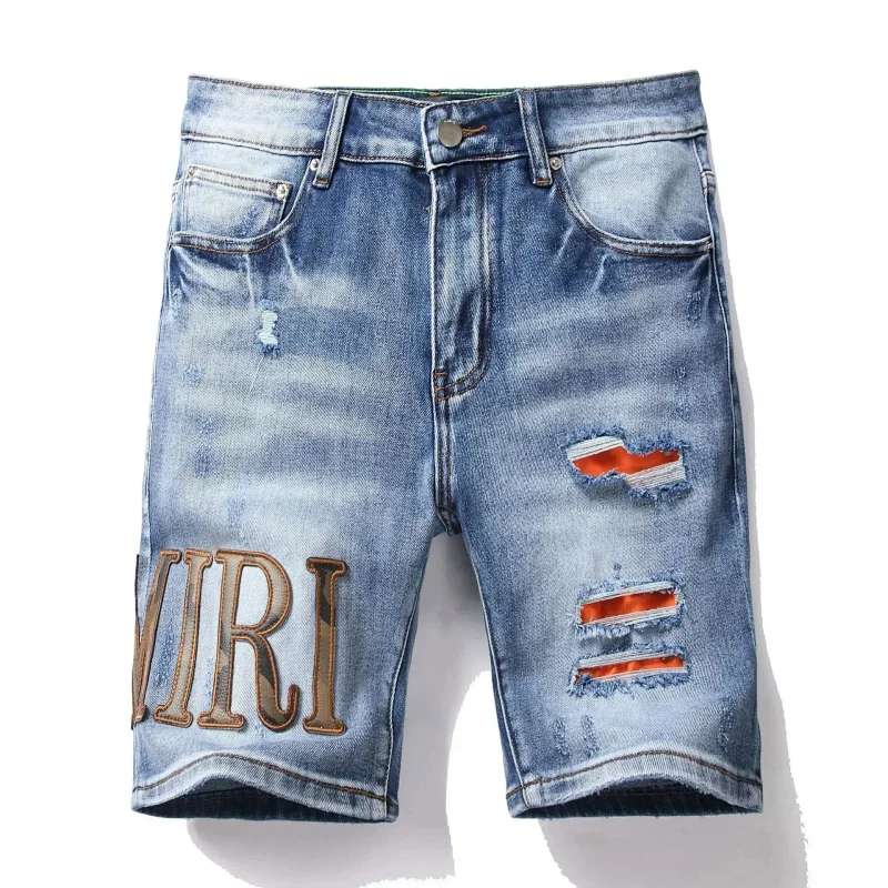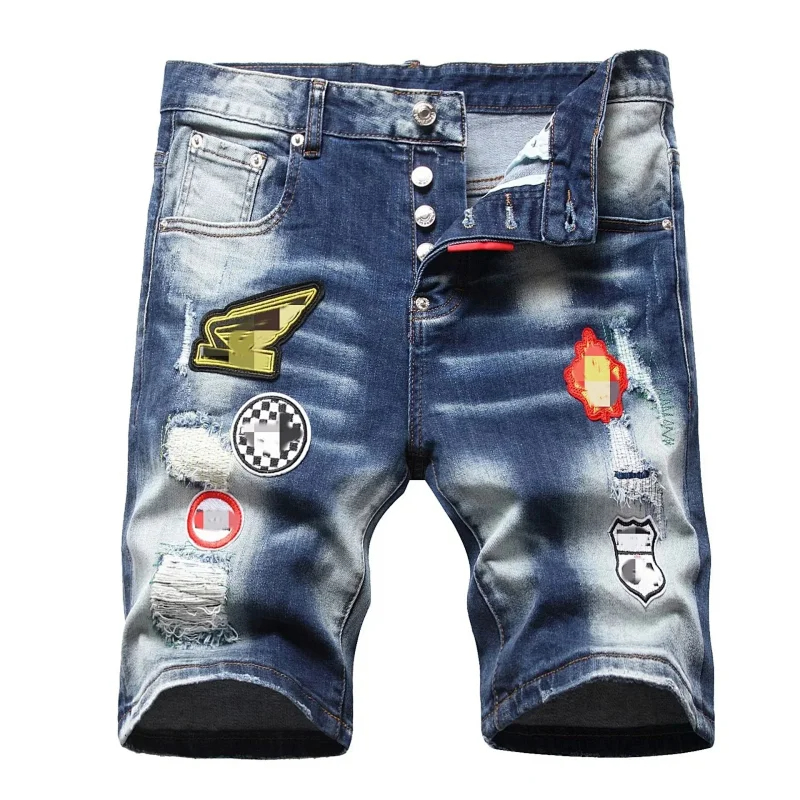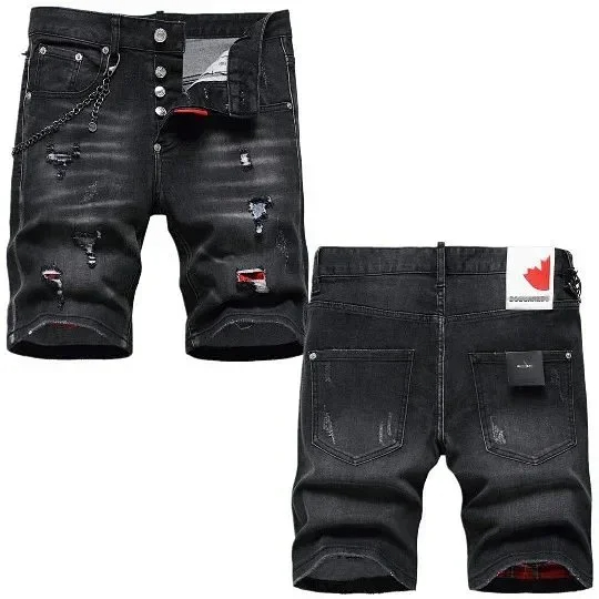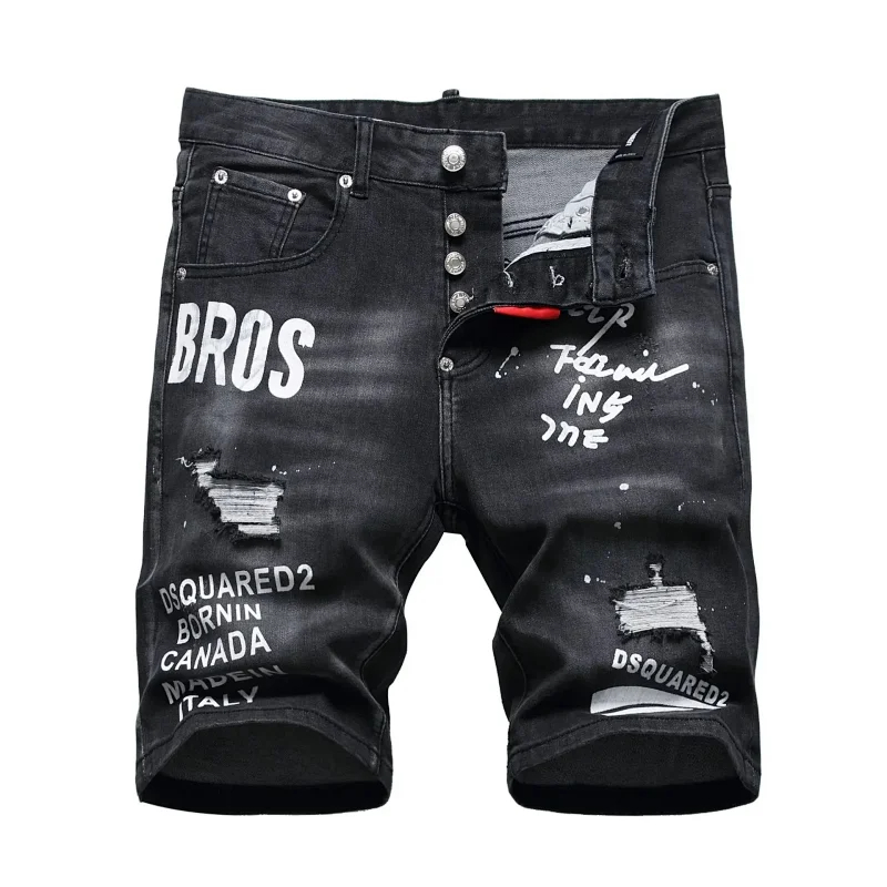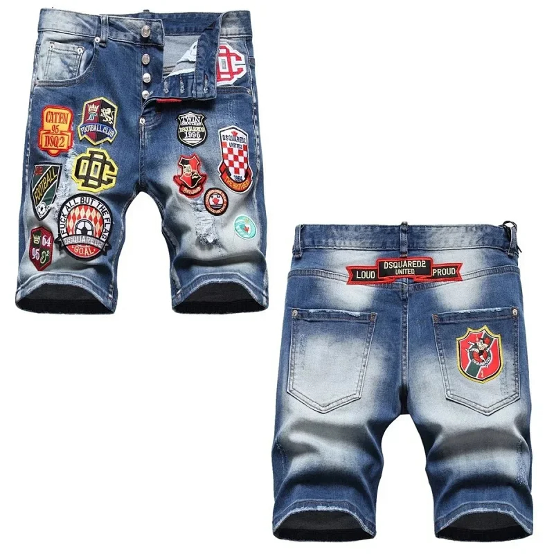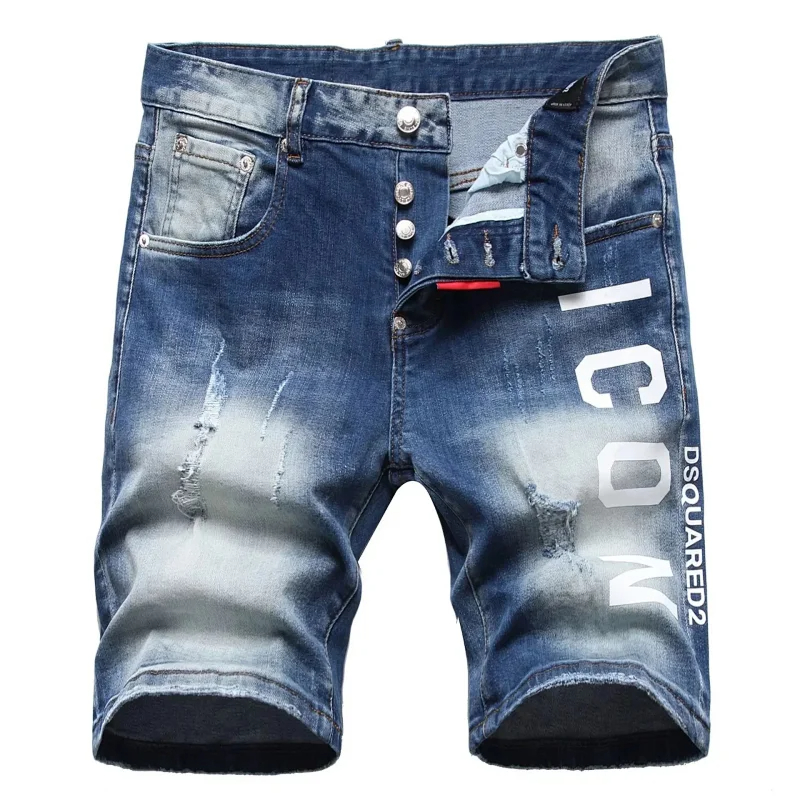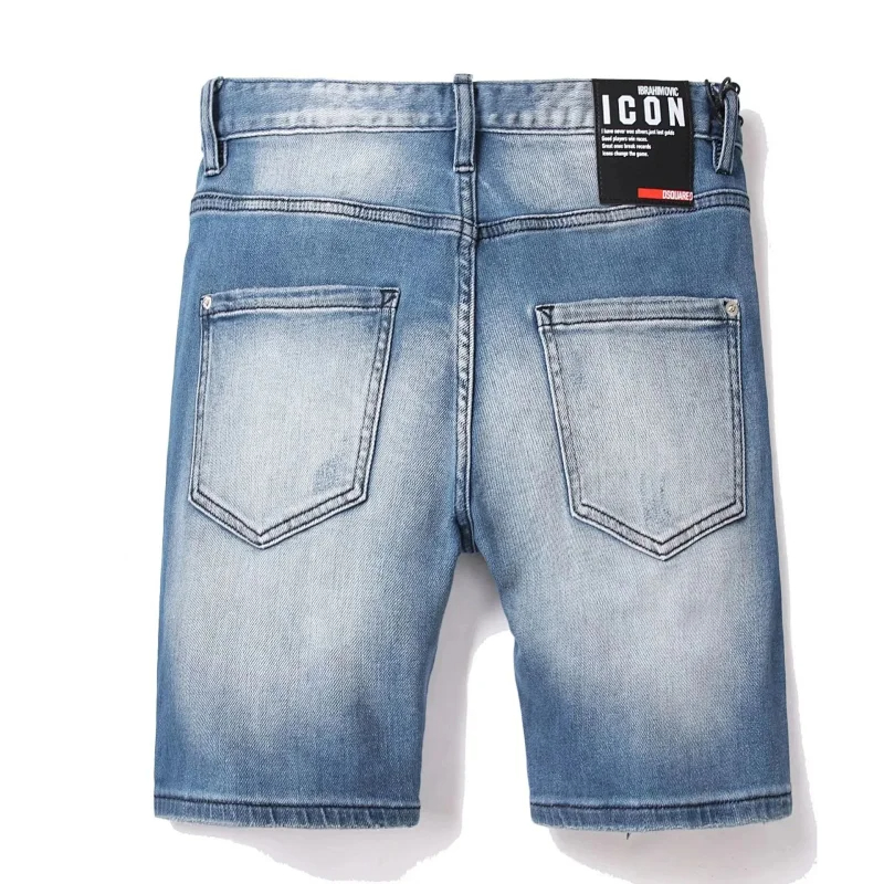 Dsquared2 Washed light-colored slightly stretched letter pattern five-point jeans-2496