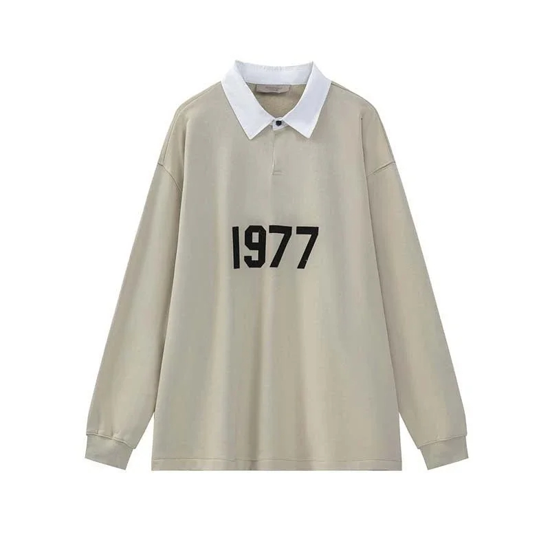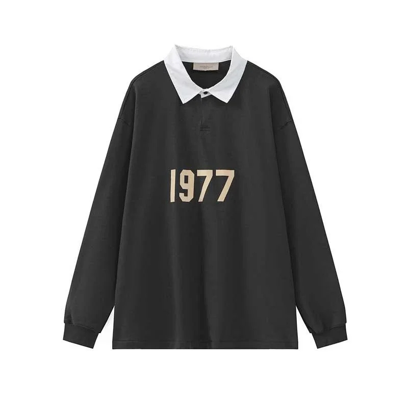ESSENTIALS Printed Polo Collar Color-Blocked Pullover Terry Sweatshirt-5214