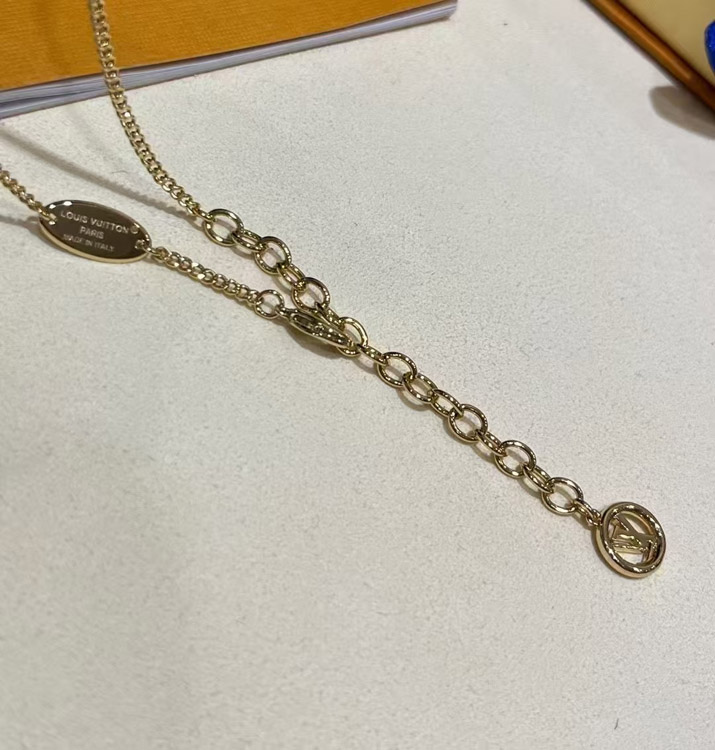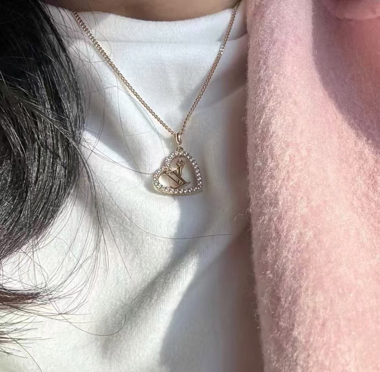 Louis Vuitton LV gold letter hollow diamond heart necklace-3725