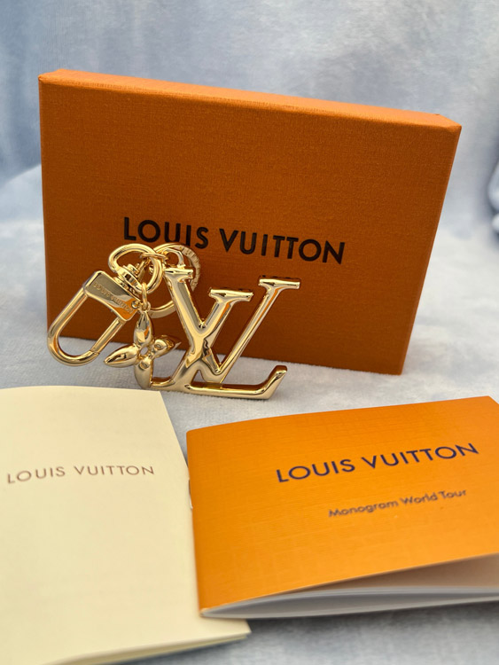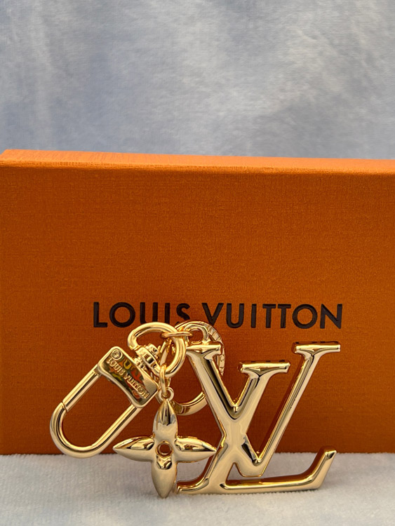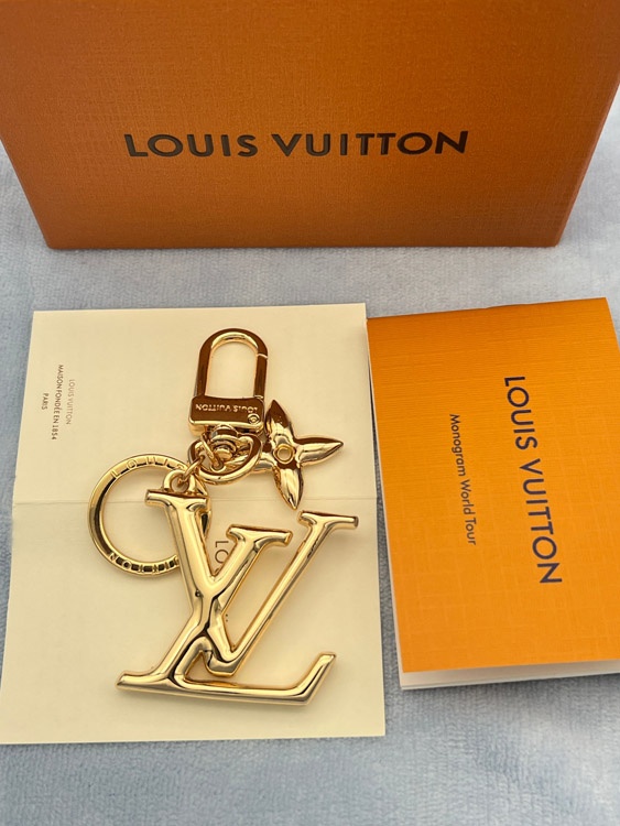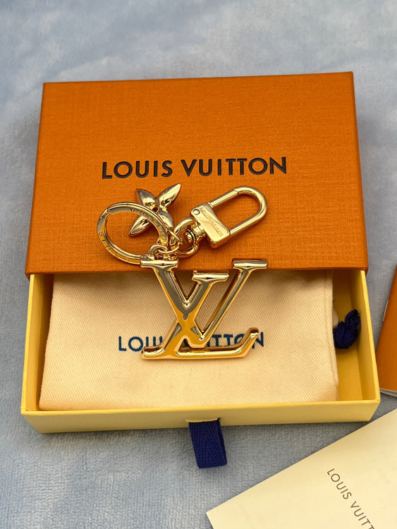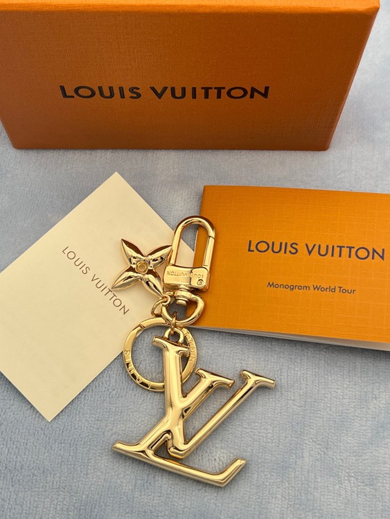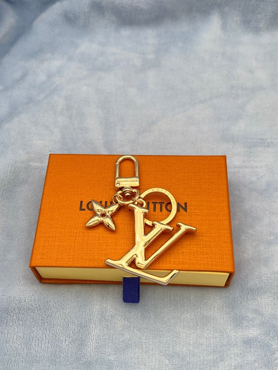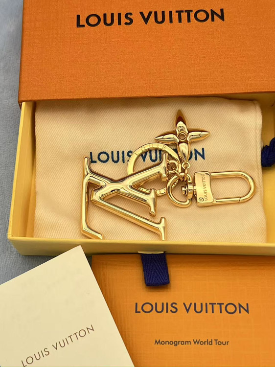 Louis Vuitton LV gold metal letter logo keychain-3867