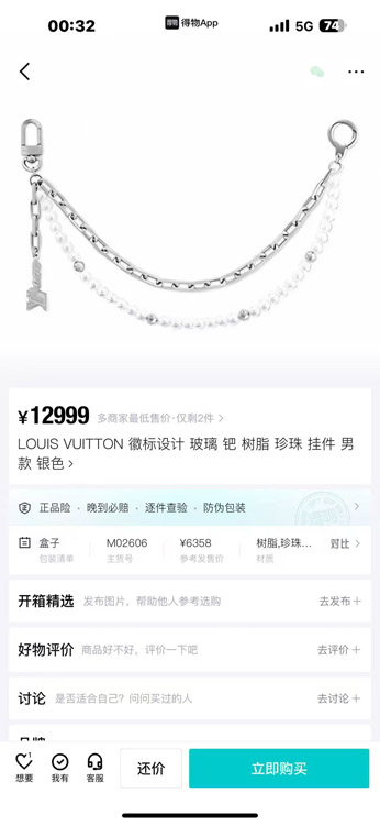 Louis Vuitton LV Pearl Metal Bar Bag Waist Chain Pendant-3857