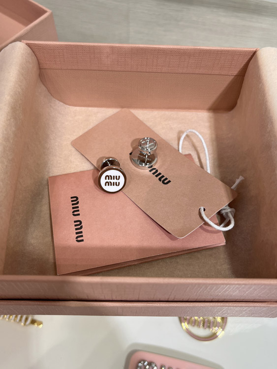 Home > MIUMIU white enamel letter metal round button earrings-3892