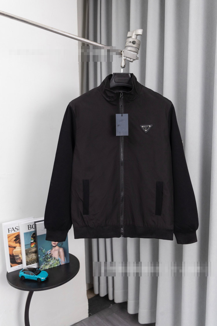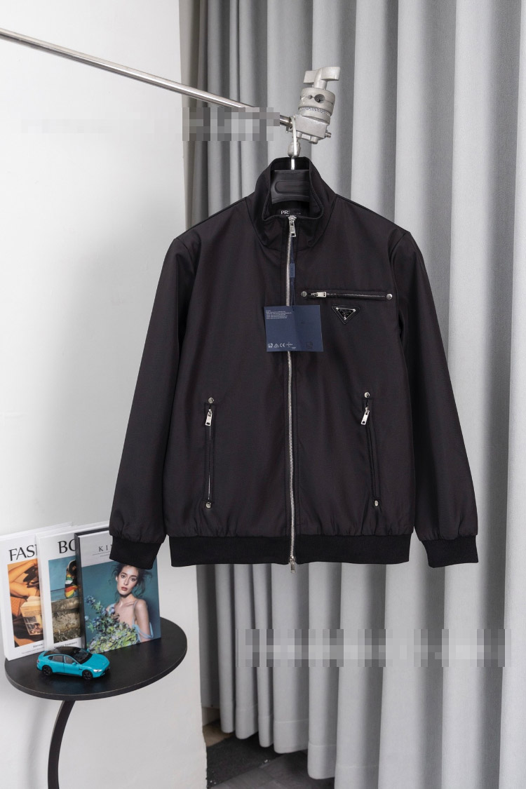 Prada new metal triangle logo multi-pocket jacket with zipper closure-5322