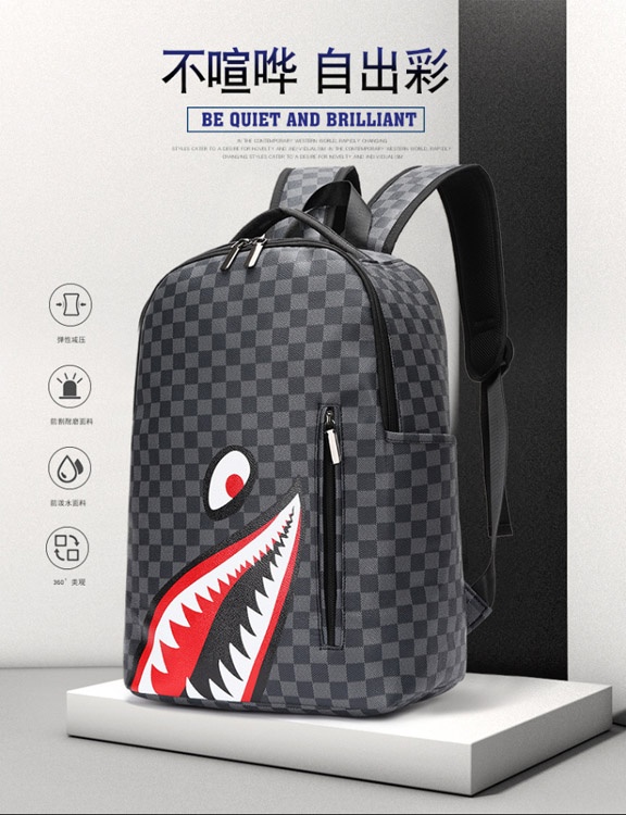 Sprayground Classic Shark Mouth Checkerboard Print Backpack-6013
