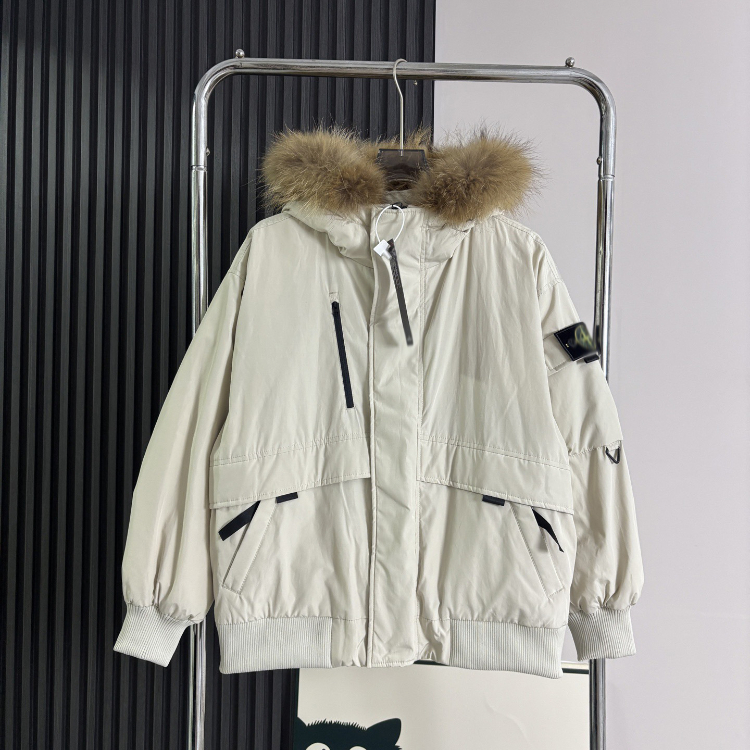 Stone Island 90% Down-filled Hooded Jacket with Fur Collar-5250