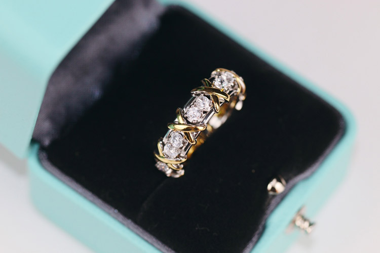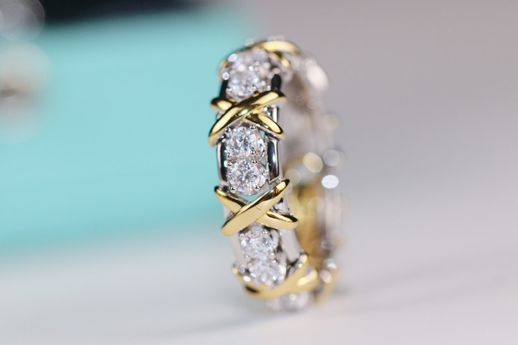 Tiffany full row diamond cross X ring-3675