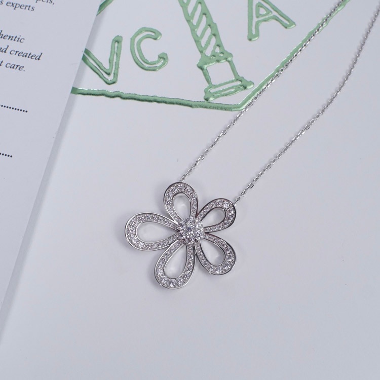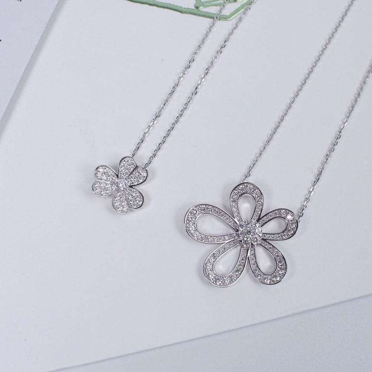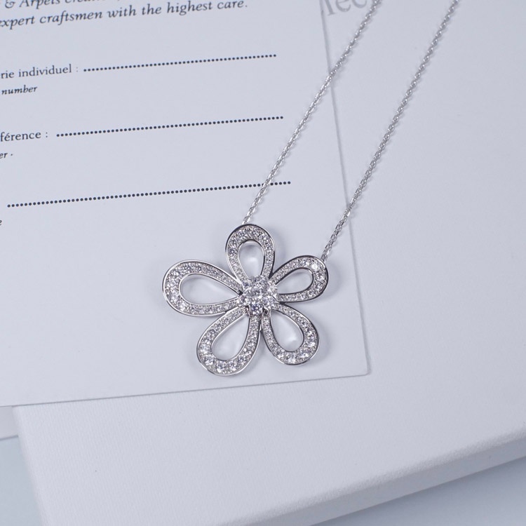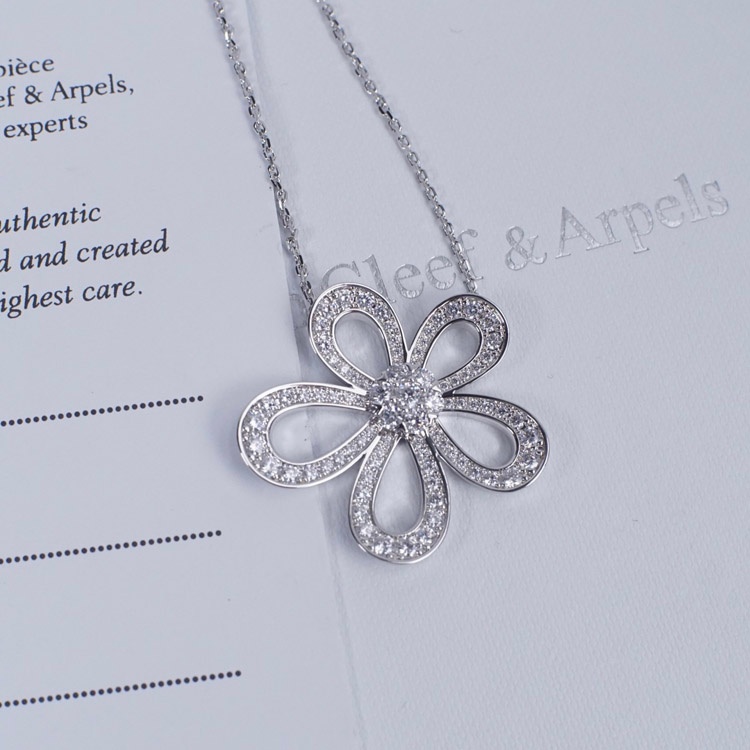 Van Cleef & Arpels platinum full diamond large flower sunflower necklace-3770