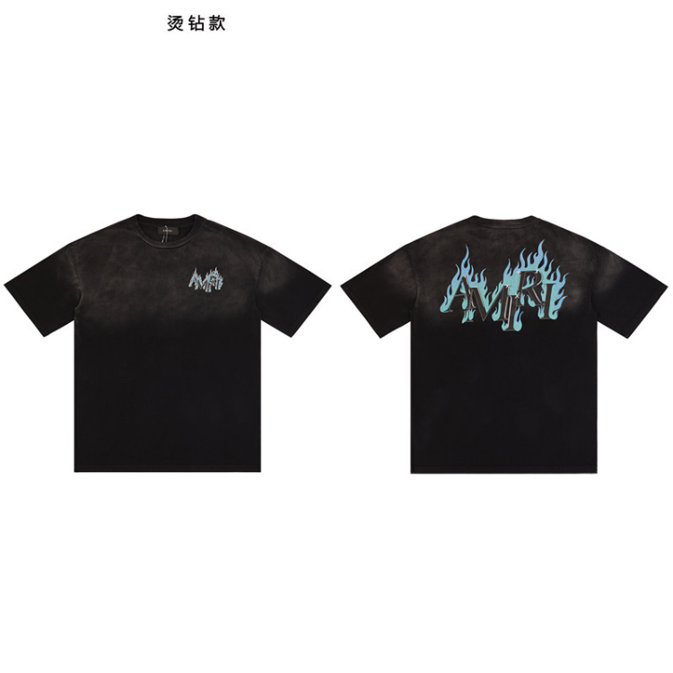 Home > AMIRI rhinestone flame letter print washed short-sleeved T-shirt-5865