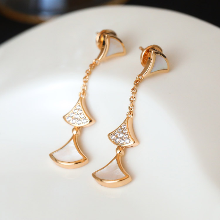 Home > Bulgari fan-shaped white mother-of-pearl diamond earrings black agate long earrings-3861