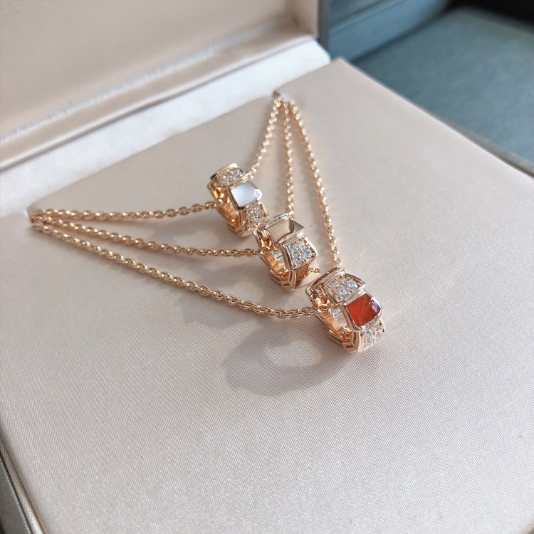 Bulgari snake bone wheel white mother-of-pearl red chalcedony rose gold necklace-3765
