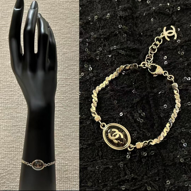 Chanel gold oval black fine flash double c letter snake bone bracelet-3740