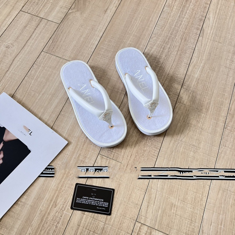 Chanel new terry cloth flat sandals with metal buckle-5710