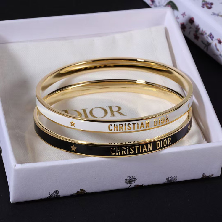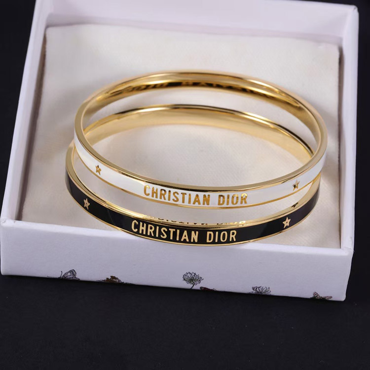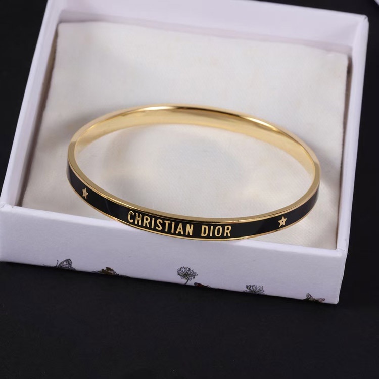 Dior bracelet gold finish metal black lacquer thin bracelet-3709