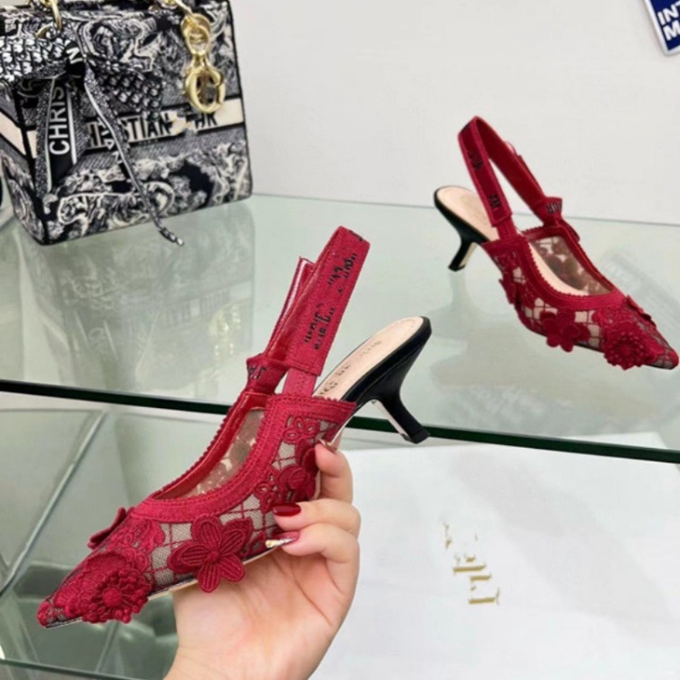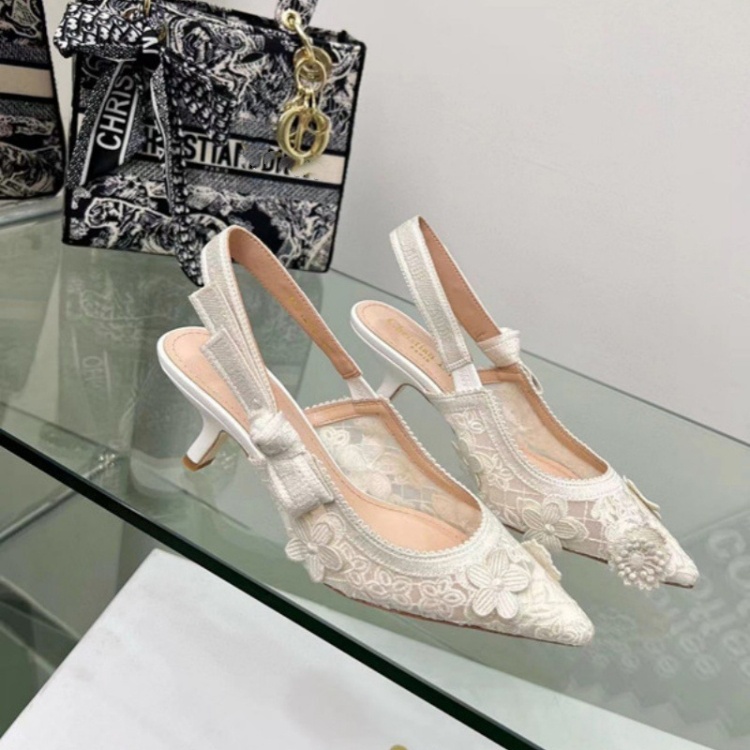 Dior embroidered flat shoes with bow and lace cutouts-5615