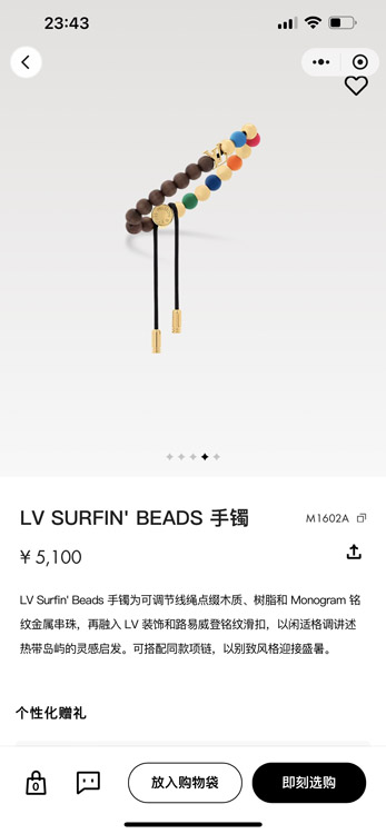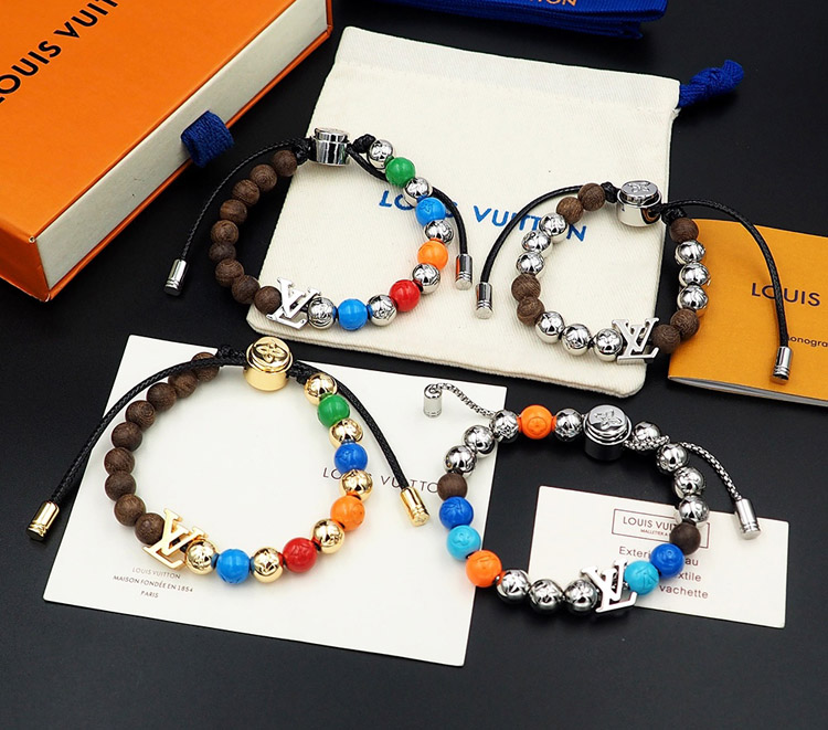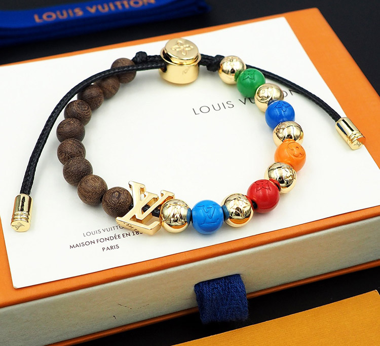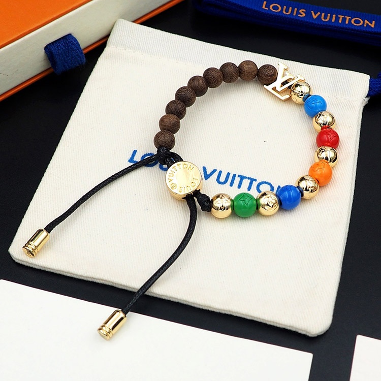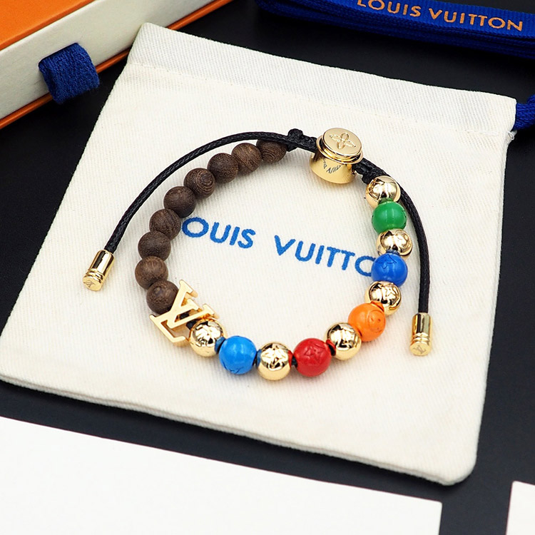 Home > Louis Vuitton LV adjustable cord embellished wooden inscription metal beaded bracelet-3949