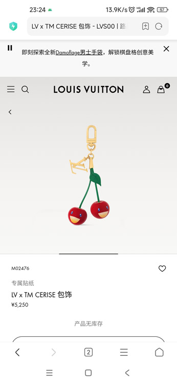 Louis Vuitton LV Metal Cherry Letter Keychain-3872