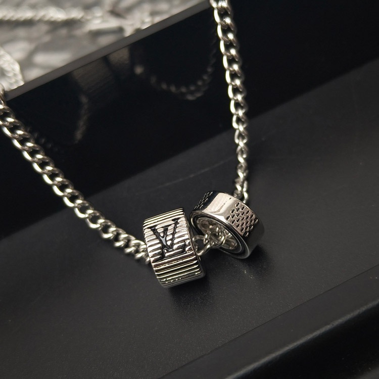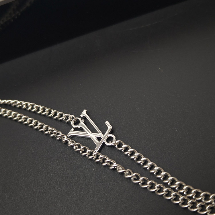 Louis Vuitton LV silver-plated letter ring necklace-3604
