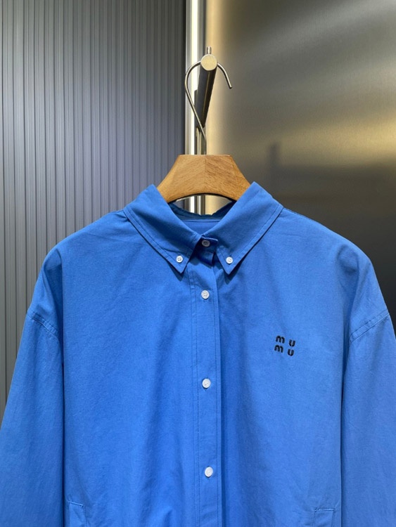 Home > Miu Miu letter embroidered blue casual shirt jacket-5485