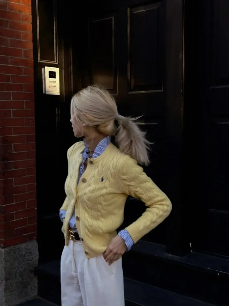 Ralph Lauren High-end original embroidered cable-knit cardigan sweater for women-2533
