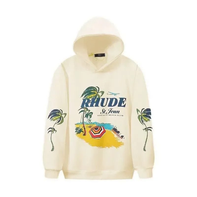 RHUDE new love coconut tree beach hoodie popular sweater-4413