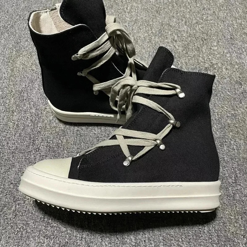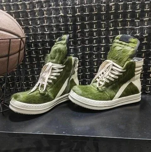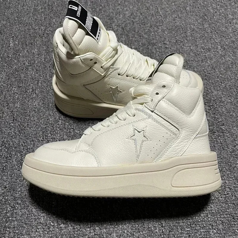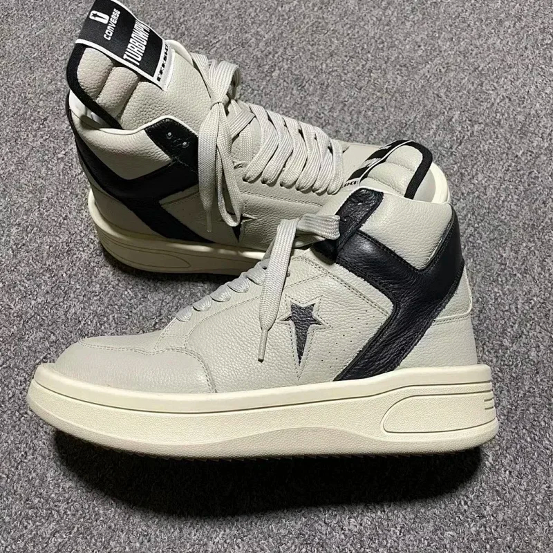 RICK OWENS/RO Edfu leather semi-gloss finish high-top fashion sneakers-2945