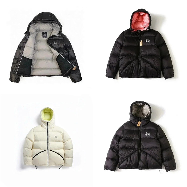 Stussy Micro Ripstop Down Parka Solid Color All-match Zipper Hooded Short Down Jacket-4351