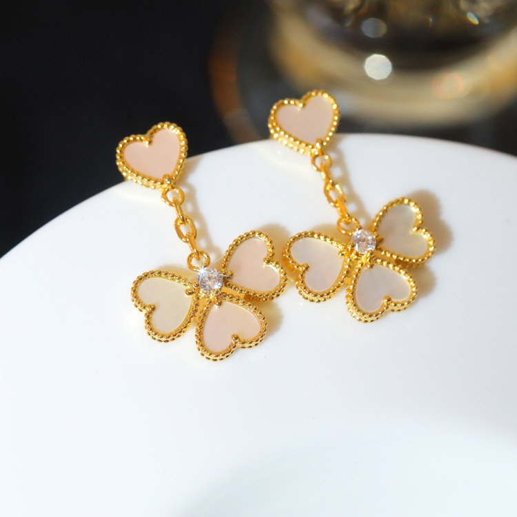 Home > Van Cleef & Arpels heart border diamond mother-of-pearl earrings necklace-3768