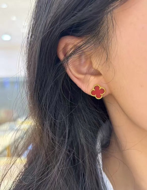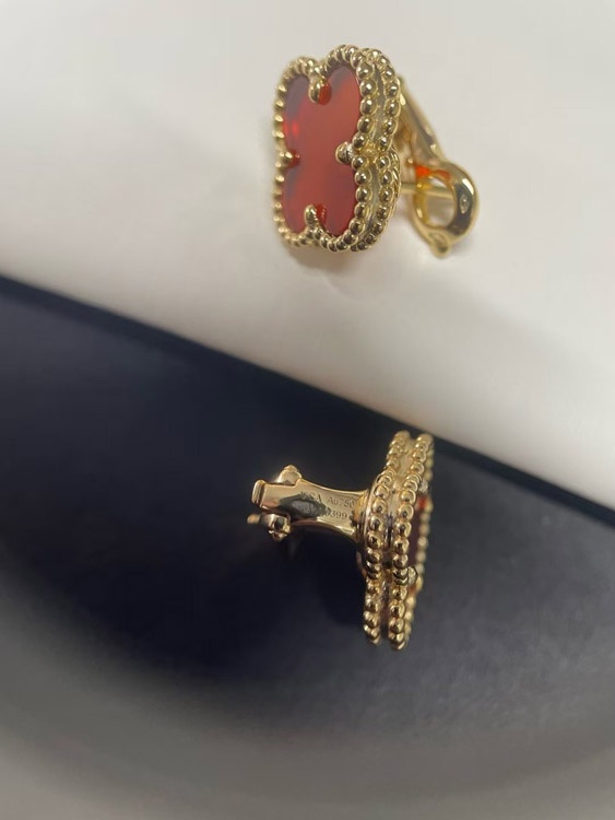 Home > Van Cleef & Arpels Red and White Four-Leaf Clover Earrings-3700